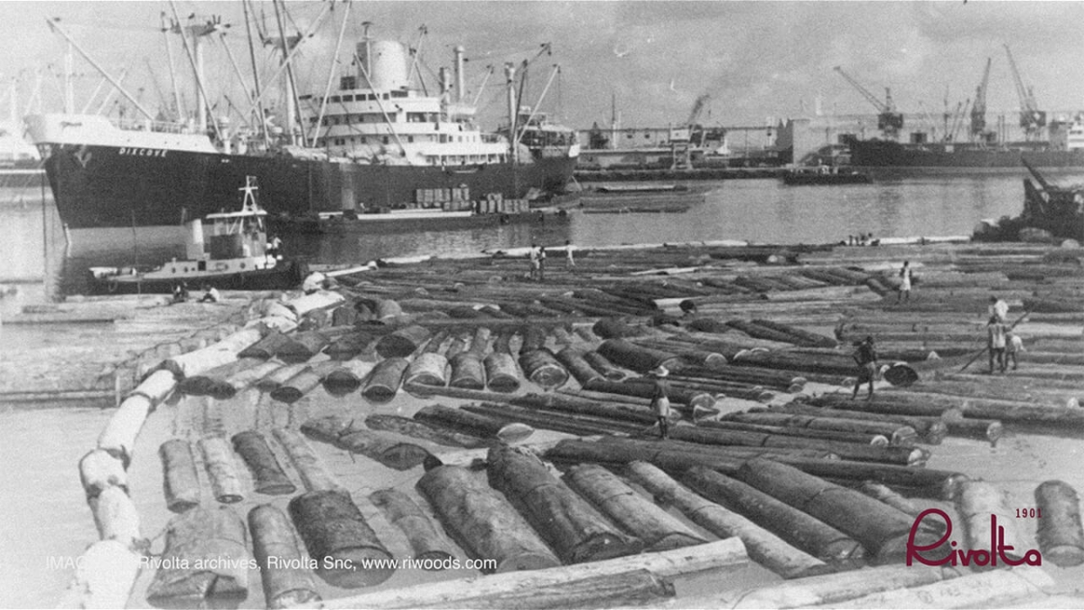 Gian Piero Rivolta in front of Mahogany logs, with extraordinary dimensions