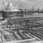 Logs in Takoradi port, 1960s