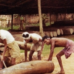 La proibizione di esportare tronchi dall’India fu senza dubbio un brutto colpo per la nostra azienda, che si vedeva privata di una grande parte del proprio lavoro. Tuttavia molte piccole e rudimentali segherie cominciarono a produrre semilavorati, soprattutto manici di coltello ed elementi per chitarra come tastiere, ponticelli e fasce e fondi. Fu così che cominciò un nuovo lavoro anche per noi, più limitato ma altrettanto interessante. La ragione principale dei viaggi diventò quindi la scelta e il collaudo degli elementi semi-finiti.
